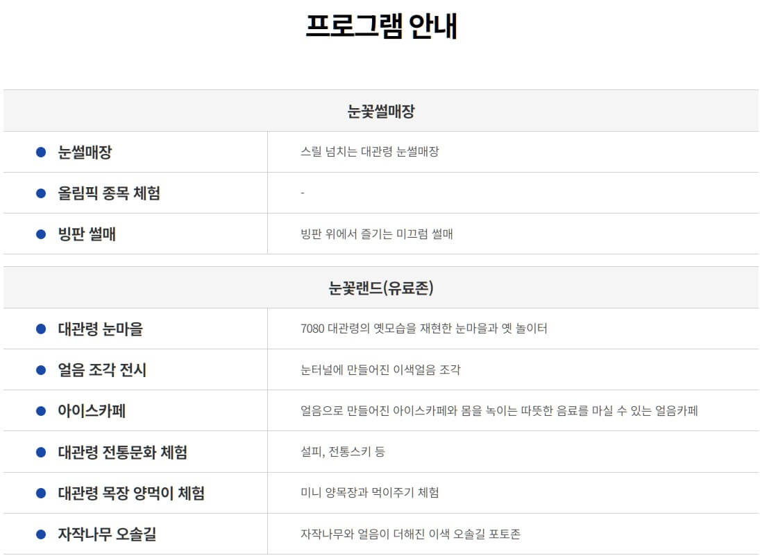 2024 대관령 눈꽃축제 가격 정보 예매방법 프로그램 소개 맛집 추천 3곳 무료셔틀버스 정보까지 출처 눈꽃축제 홈페이지
